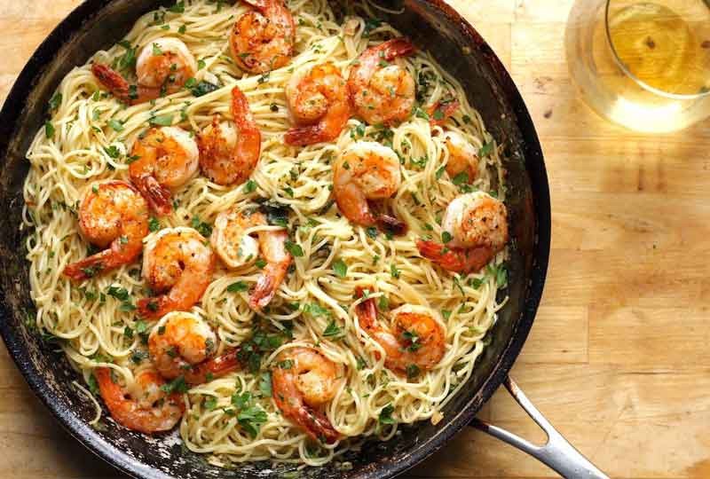 طريقة عمل مكرونة بالجمبري بالصوص الأبيض