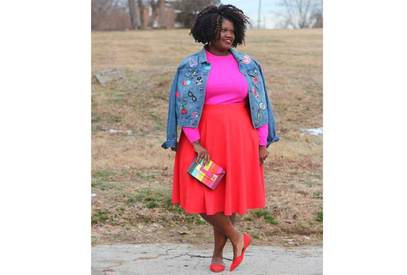 - الجينز مناسب كلمسة نهائية على إطلالة من الألوان القوية كما فعلت جورجيت من مدونة Grown and Curvy Woman.