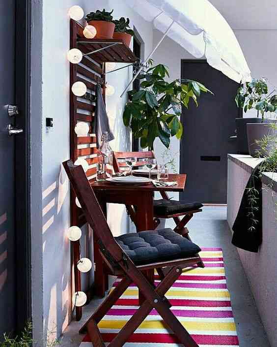 - يُمكنكِ الاستعانة بشمسية كبيرة أو تاندة لتوفير الخصوصية وحماية البلكونة من الشمس في الصباح، وحمايتها من المطر في الشتاء.
